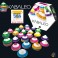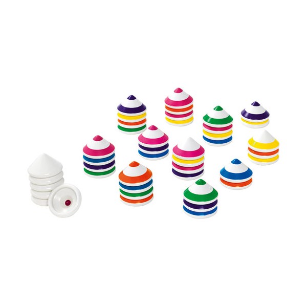 Contenu : 66 pièces pyramidales en uréa, un sac en tissu, règle du jeu.